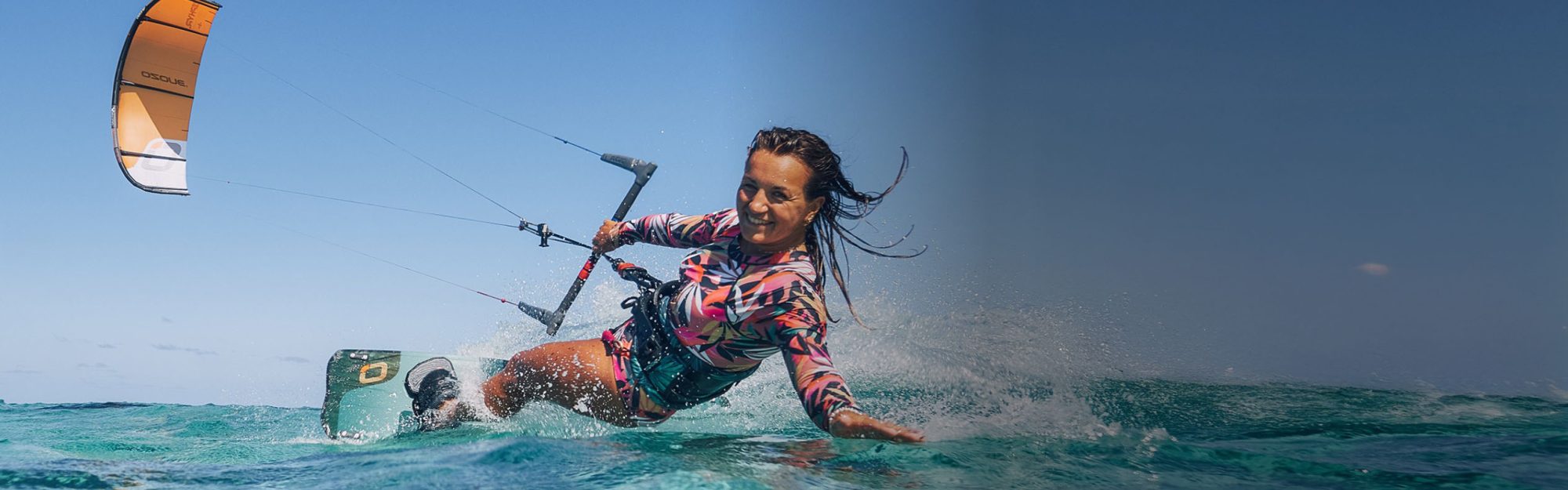 큰 연(Kite)을 하네스를 통해 몸에 연결하여 바람의 힘을 받아 보드 위에서 활주하며, 속도와 스릴을 동시에 즐길 수 있는 무동력 수상 스포츠입니다.